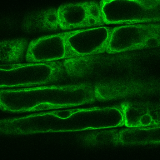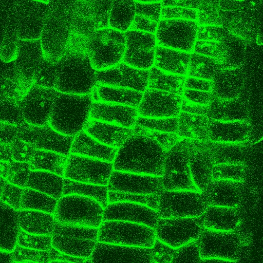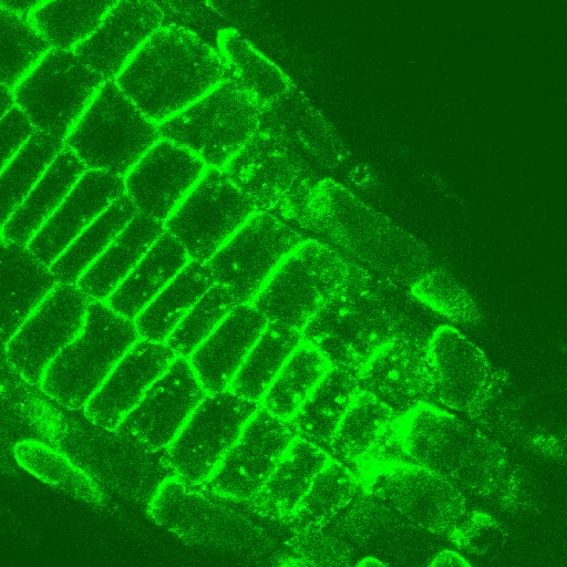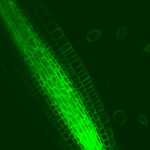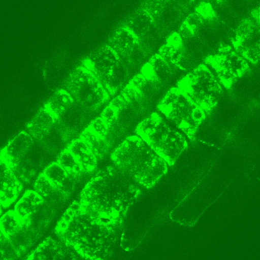 '''PIN2''', 25-50 um chemical (left) compared to DMSO control (right). Results: mislocalization of PIN2-GFP, agglomerations