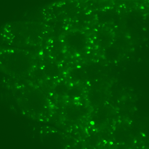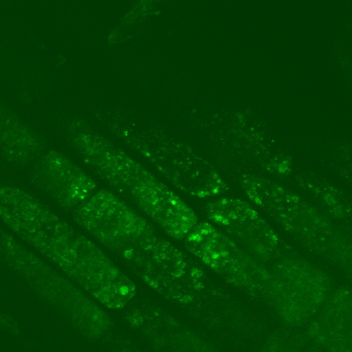 '''ARA7''', 25-50 um chemical (left) compared to DMSO control (right). Results: normal localization of ARA7-GFP but the signal is weaker